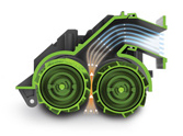 | Az AeroForce tisztító fej, amely dinamikusan alkalmazkodik a tisztítani kívánt felülethez, legyen az padló, linóleum, csempe vagy szőnyeg. | Csúcskategóriás porszívóink nagy kapacitású AeroForce portartálya, HEPA szűrője használatával még a legfinomabb porszemcséket is összegyűjti. A robot külön kijelzi, ha a portartály megtelt. | Az AeroForce rendszer a levegőt a rotáló kefék közötti szűk résbe sűríti, ezáltal a kefék jelentősen felgyorsulnak. A korábbi modellekkel összehasonlítva szívó hatékonysága mintegy ötszöröse lett. |